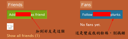 | 接下來請注意如何把對方加入好友 而不是單純的只成為粉絲 申請完帳號開始撲浪後,如果要真正成為我的好友請移駕到我的撲浪 即可看到如下圖所示 ![]() 請點 Add rmrug as friend,不是Follow喔! 感恩! |